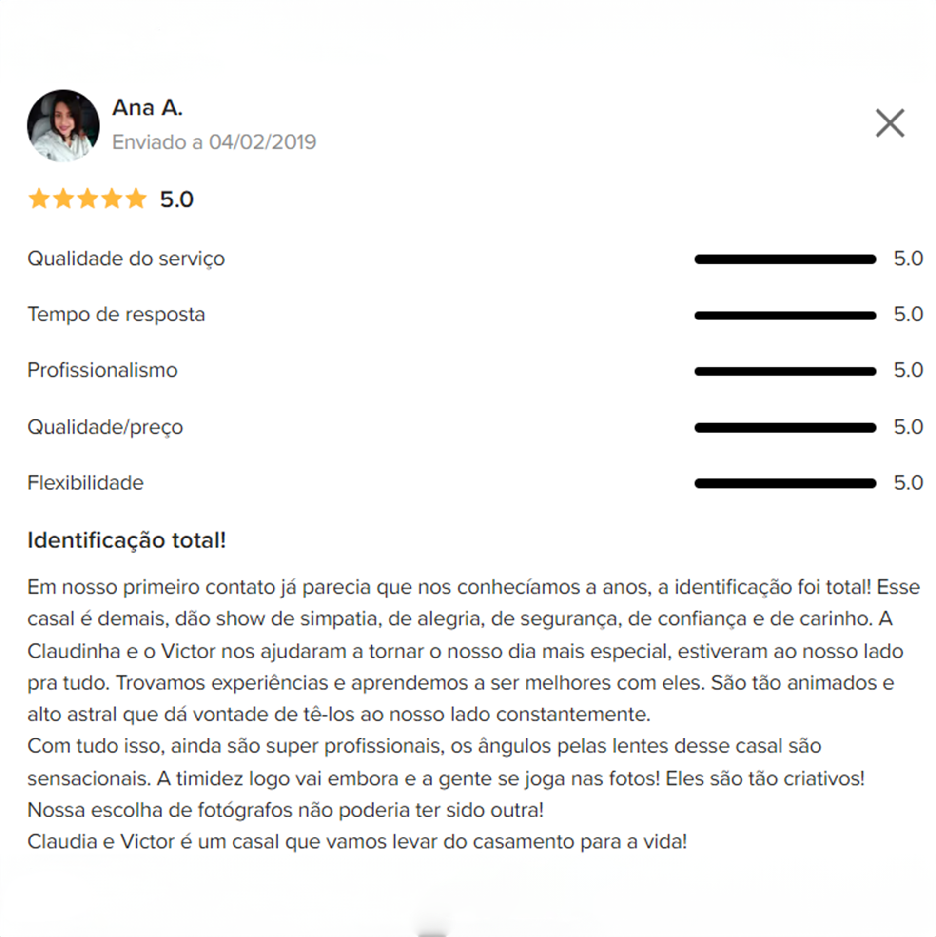 - Fotos entregues em até 30 dias após a data do ensaio.